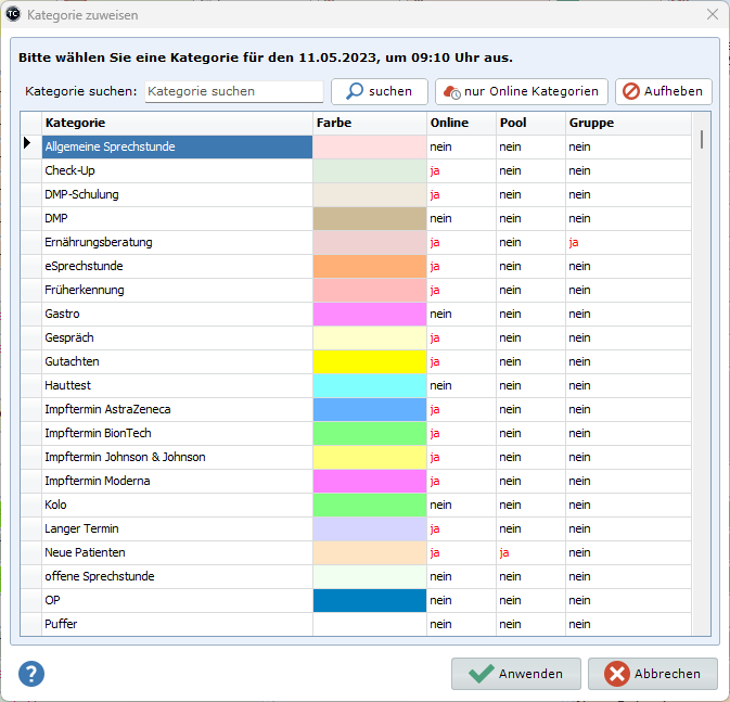 • Kategorisieren Sie Ihre Termine in TimeControl.